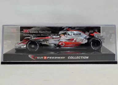商品解说■VODAFONE McLaren EN MERCEDES MP4-23 12.OCT.2008#22(银色×红色)在1/43尺寸的展示款上市了。车身上设计有Mobil等的logo。和刻有车名的专用台座一起封入了透明的盒子里。【商品详情】司机:Lewis Hamilton尺寸:全长约10cm