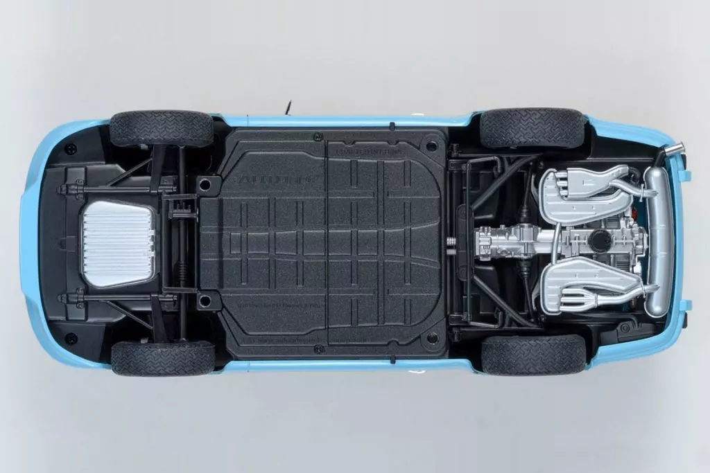 采用轻薄的车身面板及FRP化的保险杠、简单的内装材料等彻底轻量化的车身上,搭载了最大功率产生210马力的2.7升空冷水水平对置6缸发动机。