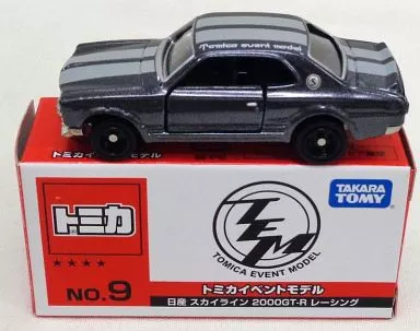 商品解说■「多美卡活动款」,1/62日产Skyline2000GT-R赛车(金属灰色)系列。衣身上部印有『Tomica event model』的文字。【商品详情】尺寸:全长约7cm样式:悬挂/左右门开闭