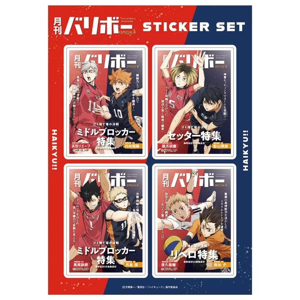 商品解説■『ハイキュー!! 』より、ステッカーセット 月刊バリボー 第2弾が登場!!【商品詳細】サイズ:シート約W210×H297mm、シール約W57×H79mm素材:紙(C)古舘春一/集英社・「ハイキュー!!」製作委員会