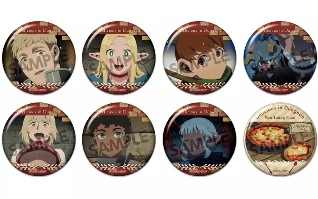 商品解说■TV动画『迷宫饭』的集换式徽章第2弹登场!【商品详情】共8种尺寸:直径约57 mm材质:纸、钢(C)九井諒子・KADOKAWA刊/"迷宫饭>制作委员会<阵容>ライオスMalsilChill ChuckCentiFarinCubuluSysl人食植物的果挞