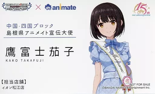 日本名: キャラカード 鷹富士茄子(島根県) アニメイト宣伝大使風名刺 「アイドルマスター シンデレラガールズ 日本横断フェア in アニメイト 中国・四国ブロック」 対象商品購入特典