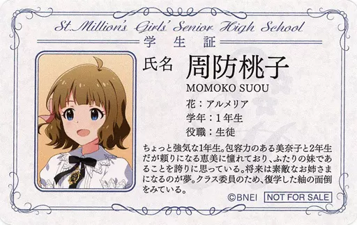 日本名: キャラカード 周防桃子 学生証風カード 「アイドルマスター ミリオンライブ! 聖ミリオン女学園フェア in アニメイト購買部」 対象商品購入特典