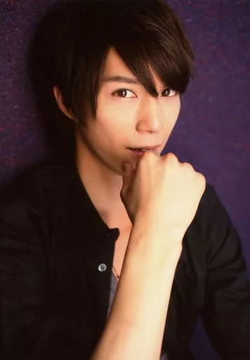 日本名: 生写真(男性)/俳優 浜尾京介/上半身・衣装黒・右手口元・右向き・背景紫/「Birthdayトークイベント」会場限定生写真