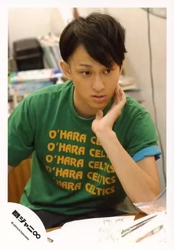 生写真(杰尼斯)/偶像/關西傑尼斯8 關西傑尼斯8/YokoyamaArtCrafts裕/上半身·坐姿·服装绿色·左手面部·带肘部·视线右下·桌子/正式生写真