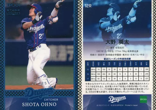 日本名: スポーツ/レギュラーカードパラレル/2018 中日ドラゴンズ STARS&LEGENDS 12R[レギュラーカードパラレル]:大野奨太(/25)