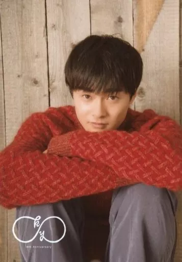 生写真(男)/演员 滉星結木/上半身衣服红色毛衣抱膝下巴坐下巴背景木墙/生日活动<滉星诞生节2018>生写真SET