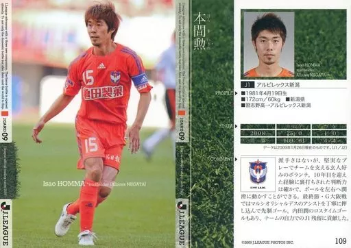 日本名: スポーツ/レギュラーカード/2009 Jリーグオフィシャルトレーディングカード 109[レギュラーカード]:本間勲