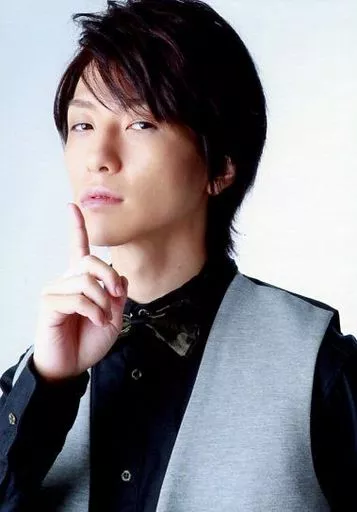 日本名: 生写真(男性)/俳優 鈴木拡樹/バストアップ・衣装黒・グレー・人差指立て/「鈴木拡樹ファン感謝トークライブin大阪」