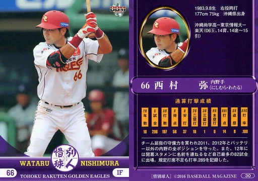 BBM/标准卡/东北乐天金鹰/BBM2016惜别球人 30[标准卡]:西村弥