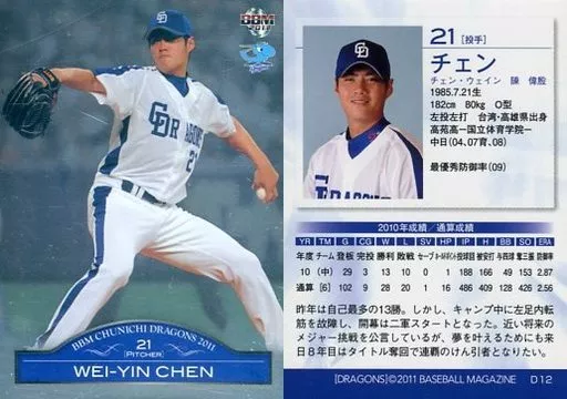 日本名: BBM/レギュラーカード/BBM2011 中日ドラゴンズ D12 [レギュラーカード] : チェン(パラレル版)