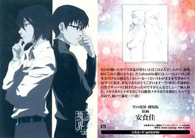 日本名: アニメ系トレカ/レア/ホロ仕様描き下ろし/劇場版「空の境界」 トレーディングカード第一弾 004[レア]:黒桐幹也&白純里緒