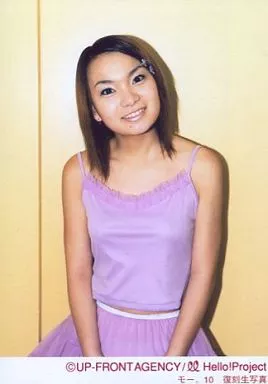 日本名: 生写真(ハロプロ)/アイドル/モーニング娘。 モーニング娘。/保田圭/上半身・両手前・衣装紫・首左に傾け・背景黄/モー。10復刻生写真