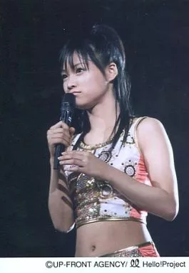 日本名: 生写真(ハロプロ)/アイドル/モーニング娘。 モーニング娘。/亀井絵里/上半身・衣装白.金・右手マイク・背景黒・ライブフォト/公式生写真