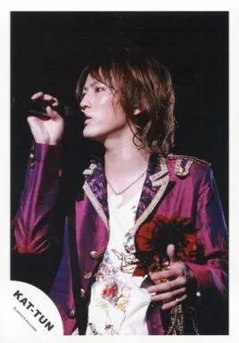 日本名: 生写真(ジャニーズ)/アイドル/KAT-TUN KAT-TUN/亀梨和也/ライブフォト・上半身・ジャケット紫・右手マイク・目線左・背景黒・ロゴ「KAT-TUN」/公式生写真