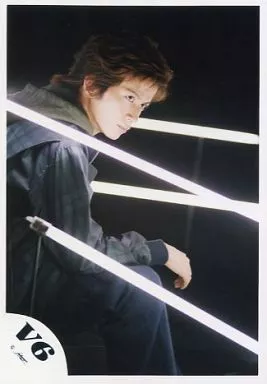 日本名: 生写真(ジャニーズ)/アイドル/V6 V6/岡田准一/膝上・右向き・チェック柄衣装緑・蛍光灯・背景黒・座り/公式生写真