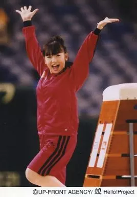 日本名: 生写真(ハロプロ)/アイドル/モーニング娘。 モーニング娘。/加護亜依/膝上・ジャージ赤.黒・両手上げ・跳び箱・笑顔/公式生写真