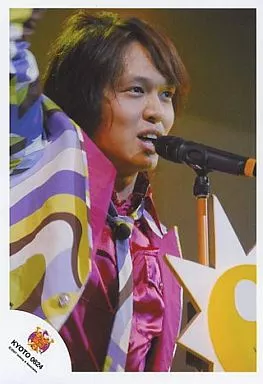 日本名: 生写真(ジャニーズ)/アイドル/関ジャニ∞ 関ジャニ∞/丸山隆平/ライブフォト・バストアップ・衣装紫緑ピンク・マイク・右手上げ・背景黒/KYOTO0624