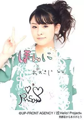 日本名: 生写真(ハロプロ)/アイドル/Berryz工房 Berryz工房/菅谷梨沙子/上半身・衣装緑白・右手ピース・背景白/京都店からありがとう