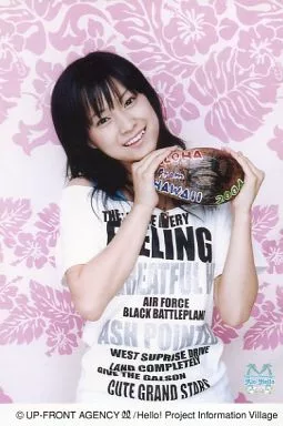 日本名: 生写真(ハロプロ)/アイドル/モーニング娘。 モーニング娘。/亀井絵里/上半身・衣装白・黒ロゴ・両手ヤシの実の置物・背景ピンク・Alo-Hello・ポストカードサイズ/公式生写真