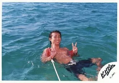 日本名: 生写真(ジャニーズ)/アイドル/KinKi Kids Kinki Kids/堂本光一/横型・膝上・衣装水着黒・両手ピース・泳ぎ・背景海/公式生写真