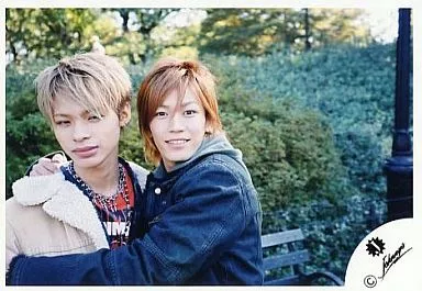 日本名: 生写真(ジャニーズ)/アイドル/KAT-TUN KAT-TUN/上田竜也・亀梨和也/横型・バストアップ・亀梨、上田を抱く・背景緑/公式生写真