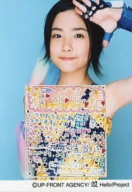 日本名: 生写真(ハロプロ)/アイドル/Berryz工房 Berryz工房/清水佐紀 /腰上・衣装黄色・左手パー・メッセージ付き・イラスト付き・背景水色/公式生写真