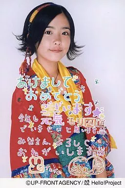 日本名: 生写真(ハロプロ)/アイドル/Berryz工房 Berryz工房/清水佐紀/上半身・衣装赤・黄・メッセージ付き「あけましておめでとうございます」・ポストカードサイズ/公式生写真