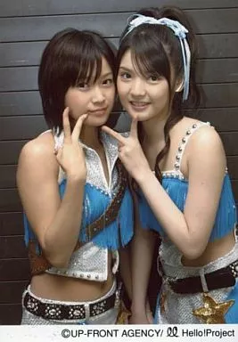 日本名: 生写真(ハロプロ)/アイドル/モーニング娘。 亀井絵里・道重さゆみ/上半身/ピース/白、水色のセパレート衣装/公式生写真