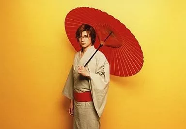 日本名: 生写真(男性)/俳優 渡辺大輔(手塚国光)/横型・膝上・衣装着物・左手傘・背景黄色・キャラクターショット/ミュージカルテニスの王子様 The Imperial Presence 氷帝 feat. 比嘉