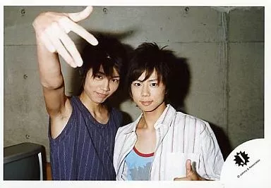 日本名: 生写真(ジャニーズ)/アイドル/ジャニーズJr. ジャニーズJr./横尾渉・北山宏光/横型・バストアップ・横尾右手上げ・背景グレーの壁/公式生写真