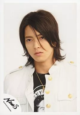 日本名: 生写真(ジャニーズ)/アイドル/NEWS NEWS/山下智久/バストアップ・白ジャケット・黒シャツ・金色ネックレス・背景白/公式生写真