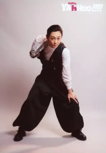 日本名: 生写真(男性)/俳優 三上俊(風露草太)/全身・衣装黒・白・右手ジャケット・足広げ・左手膝・前屈み/舞台「ナイスコンプレックス N30 フリーカル『YAhHoo!!!!』」ランダムブロマイド