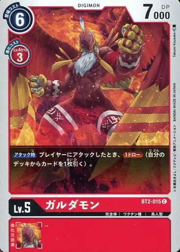日本名: デジモンカードゲーム/C/DIGIMON/赤/完全体/ワクチン種/鳥人型/Lv.5/DP7000/ブースター ULTIMATE POWER【BT-02】 BT2-015[C]:ガルダモン