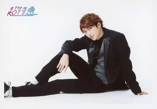 生写真(男性)/偶像/超特急 超特急/ユーキ(村田祐基)/横式·全身·坐式·服装黑·向左·右足立·背景白/ユーキ22 nd Birth Anniversary Ver特别生写真SET