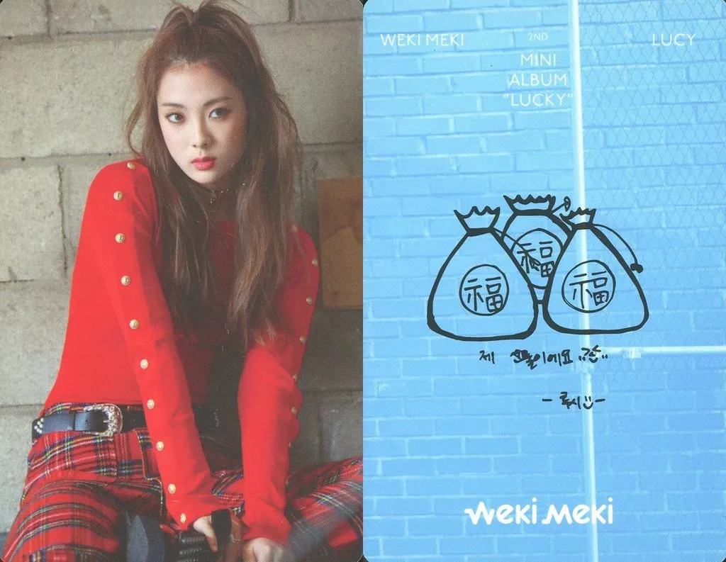 日本名: コレクションカード(女性)/CD「2nd Mini Album : Lucky(Weki Ver.)」封入特典フォトカード Weki Meki/ルーシー(Lucy)/裏面水色/CD「2nd Mini Album : Lucky(Weki Ver.)」封入特典フォトカード