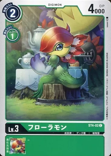 日本名: デジモンカードゲーム/C/DIGIMON/緑/成長期/デ-タ種/植物型/Lv.3/DP4000/スタートデッキ ギガグリーン【ST-4】 ST4-02[C]:フローラモン