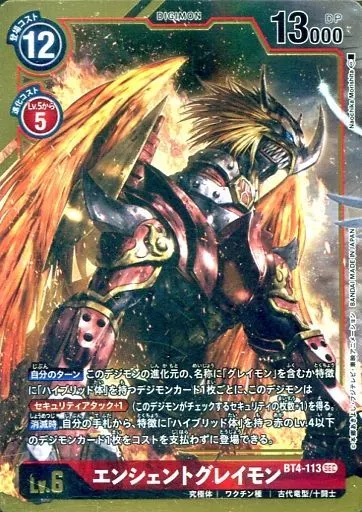 日本名: デジモンカードゲーム/SEC/DIGIMON/赤/究極体/ワクチン種/古代竜型/十闘士/Lv.6/DP13000/ブースター グレイトレジェンド【BT-04】 BT4-113[SEC]:(パラレル)エンシェントグレイモン