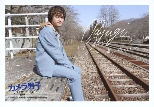 日本名: 生写真(男性)/俳優 横田龍儀/横型・膝上・座り・印刷サイン・メッセージ入り/DVD「カメラ男子 プチ旅行記 シーズン2 ~飛騨編~」購入特典ブロマイド