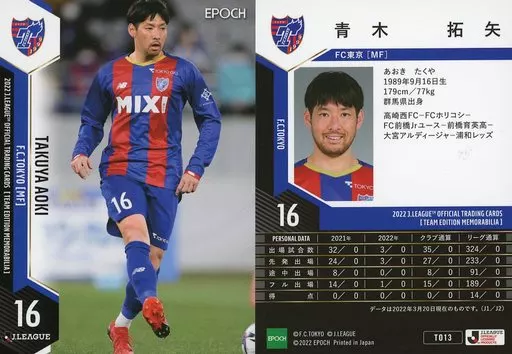 日本名: スポーツ/レギュラーカード/2022 Jリーグオフィシャルトレーディングカード [チームエディション・メモラビリア] FC東京 TO13[レギュラーカード]:青木拓矢