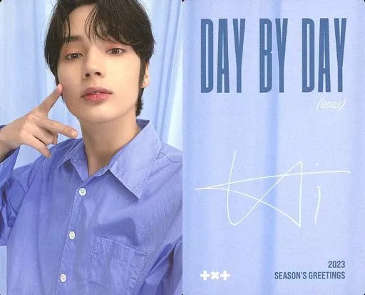 日本名: コレクションカード(男性)/「TOMORROW X TOGETHER 2023 SEASON’S GREETINGS」(VISUAL ver.)封入特典フォトカード TOMORROW X TOGETHER/ヒュニンカイ/裏面青・印刷サイン入り/「TOMORROW X TOGETHER 2023 SEASON’S GREETINGS」(VISUAL ver.)封入特典フォトカード