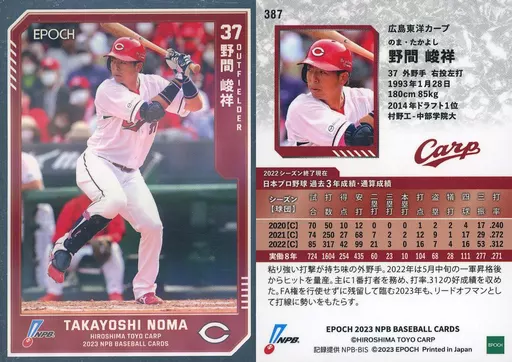 日本名: スポーツ/インサートカード/レギュラーパラレルカード/EPOCH 2023 NPBプロ野球カード 387[インサートカード]:野間峻祥(銀)