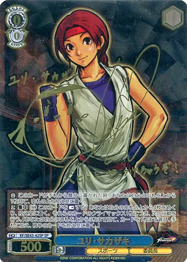 日本名: ヴァイスシュヴァルツ/SP/キャラ/プレミアムブースター THE KING OF FIGHTERS KF/SE43-42SP[SP]:(ホロ)ユリ・サカザキ(加隈亜衣金箔押しサイン入り)