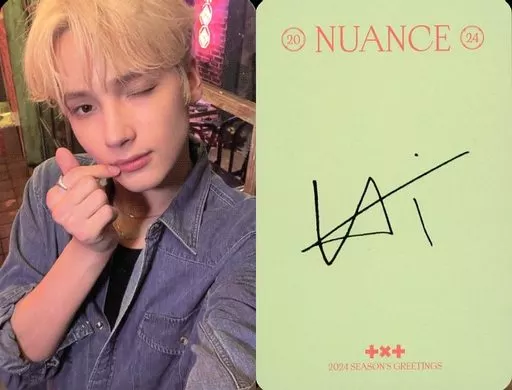 日本名: コレクションカード(男性)/「TOMORROW X TOGETHER 2024 SEASON’S GREETINGS」封入フォトカード TOMORROW X TOGETHER/ヒュニンカイ/裏面緑/「TOMORROW X TOGETHER 2024 SEASON’S GREETINGS」封入フォトカード
