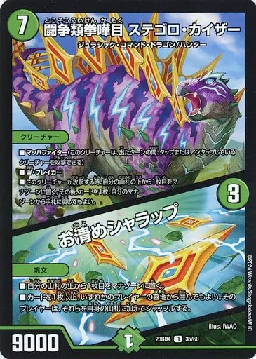日本名: デュエルマスターズ/R/自然/[DM23-BD4]エキサイティング・デュエパ・デッキ 「ドラドラドラゴン龍幻郷」 35/60[R]:闘争類拳嘩目 ステゴロ・カイザー/お清めシャラップ