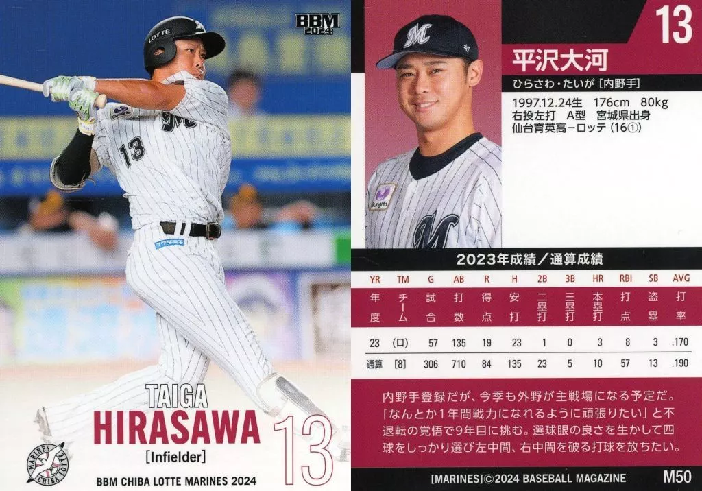日本名: BBM/レギュラーカード/BBM 千葉ロッテマリーンズ ベースボールカード2024 M50[レギュラーカード]:平沢大河