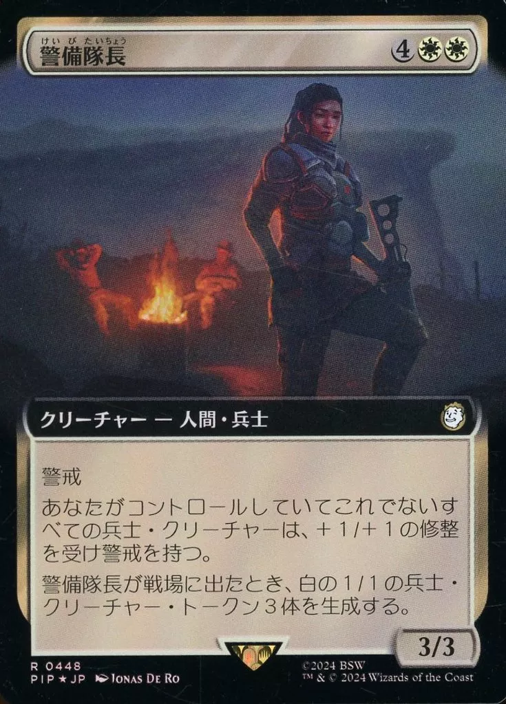 日本名: マジックザギャザリング/日本語版FOIL/R/白/ユニバースビヨンド Fallout コレクター・ブースター 0448[R]:【PIP】【FOIL】【拡張アート版】警備隊長/Captain of the Watch