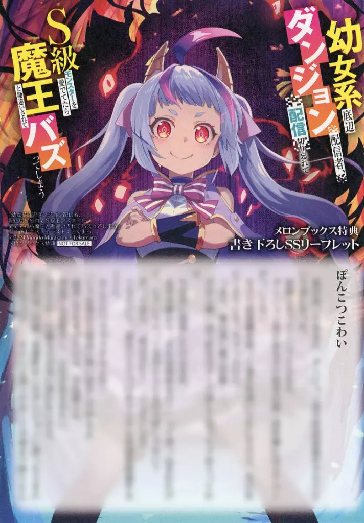 4頁設計本產品為輕小說<少女系底層地牢配信者,若忘了停止配信而愛S級怪物,會被誤認為魔王(1)>的Melonbooks購入特典