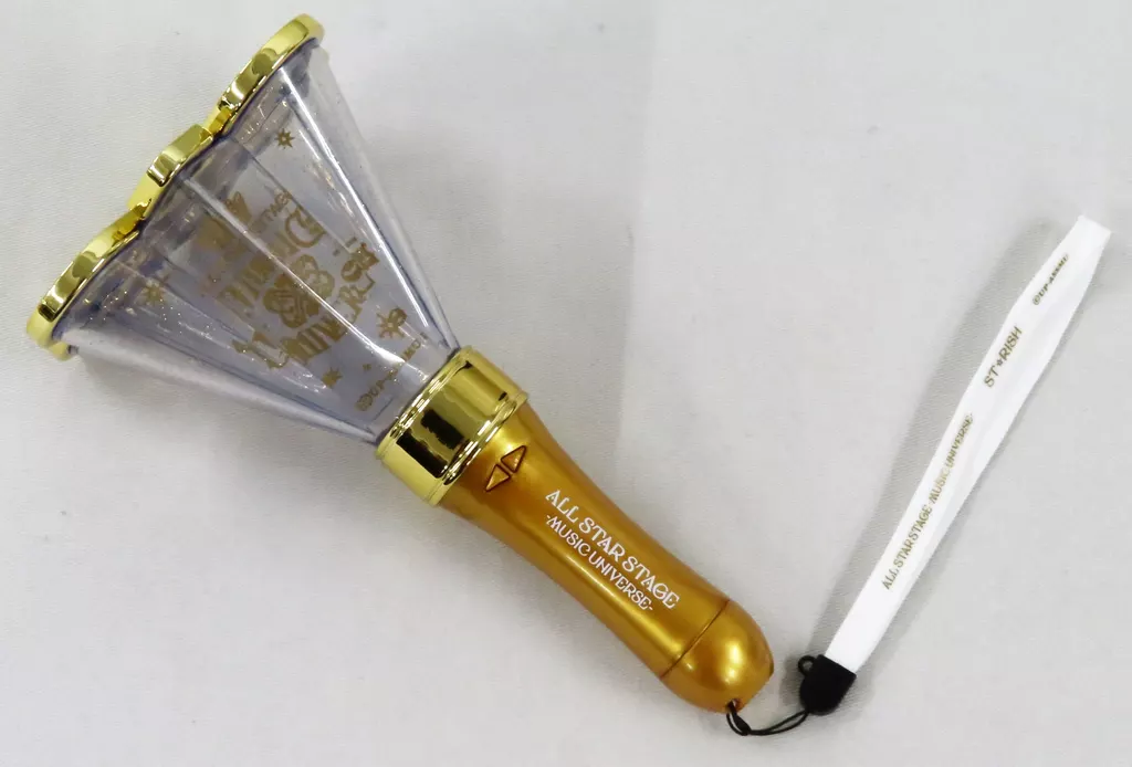 商品解說■「ALL STAR STAGE-MUSIC UNIVERSE-"的設計的火炬型的燈。各偶像的形象色+發出白色光芒。【商品詳情】尺寸:約W 95 H176mm材質:發光部ABS樹脂、握把部ABS樹脂使用電池:堿性3號電池×1樣式:8色發光※關於二手產品,電池・電池餘量的有無等的保証等為一不限。敬請見諒。