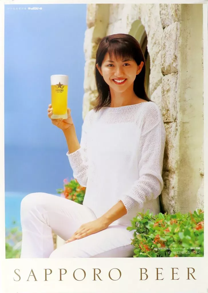 產品解說■2001年札幌生啤活動女孩紗川理帆的"札幌生啤"宣傳海報。